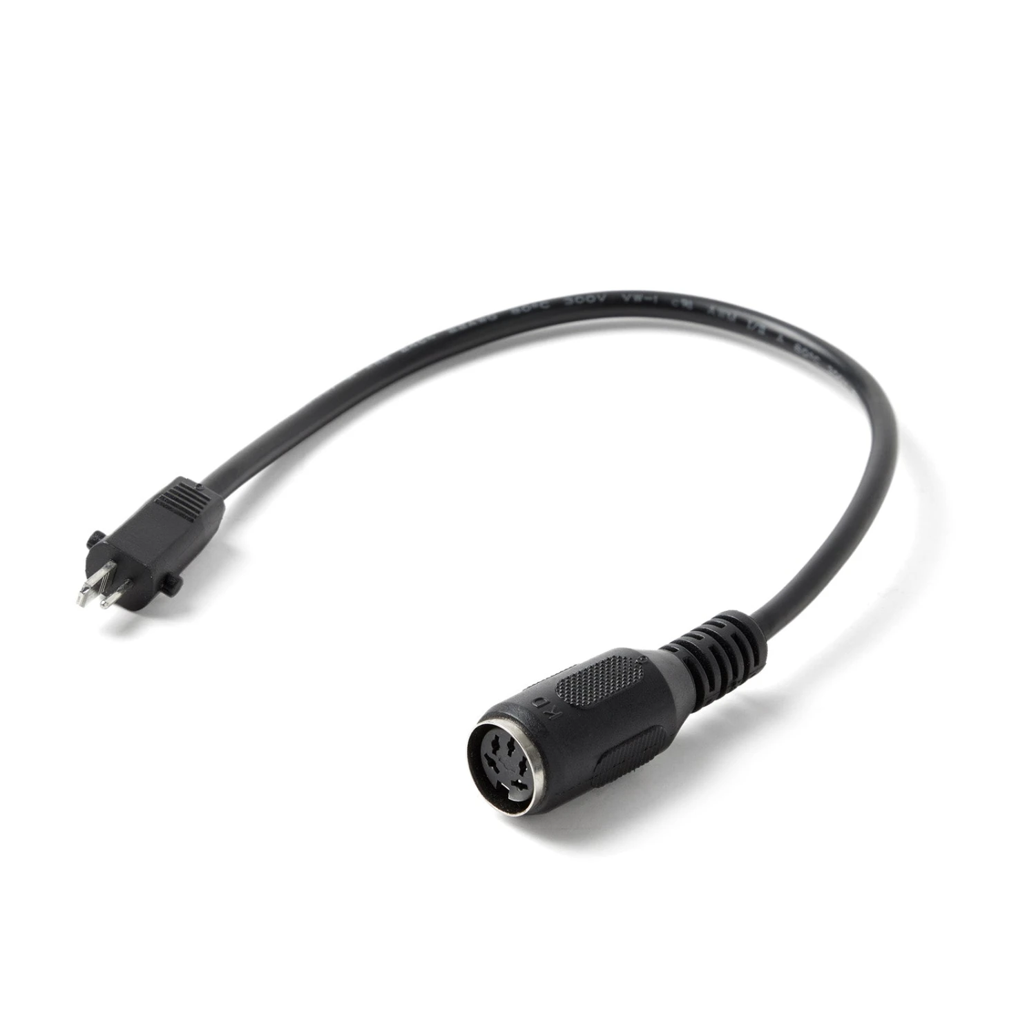 - The cable has a 2-pin male plug on one side for connecting to the power adapter or battery pack and a non-standard 5-pin female plug on the other side for connecting to the chair. The cable length is 50cm/19.5 inches.