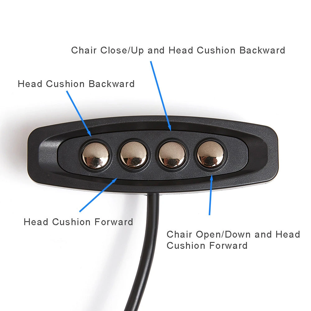 - The switch has four buttons, it operates the head cushion backward and forward; chair open/close (up/down).