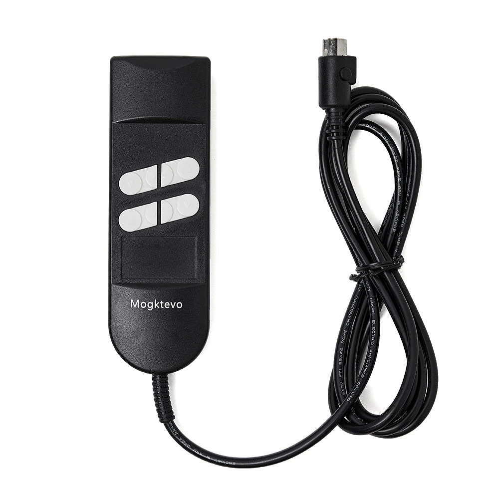The Mogktevo 4-button remote controller is an universal replacement remote controller for dual-motor electric recliner/lift chairs. It adopts an industry-standard wiring method and round five-pin plug, which is suitable for most brands in the market.